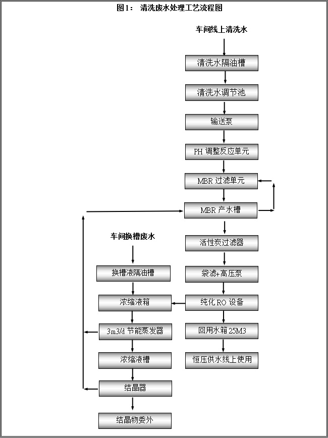 污水處理工藝的選擇應綜合考慮工程投資、運行管理費用、出水水質要求、操作管理難易、占地面積的大小等多種因素。本污水表面活性劑高,含有油脂、同時水量較小,一般的化學生化處理是不適宜的工藝。廢水處理后要求回用,故常規的物化生化工藝不能滿足回用要求。我們根據水量與水質提出如下工藝設備進行處理與回用。