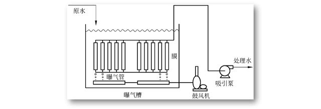 膜組件直接放置在曝氣池中,通過負壓泵將凈化后的水抽出,活性污泥則被截留在曝氣池內。膜組件下方還會設置曝氣裝置,通過氣泡使膜片抖動,來減少活性污泥在膜表面的積累,減少膜污染的形成。